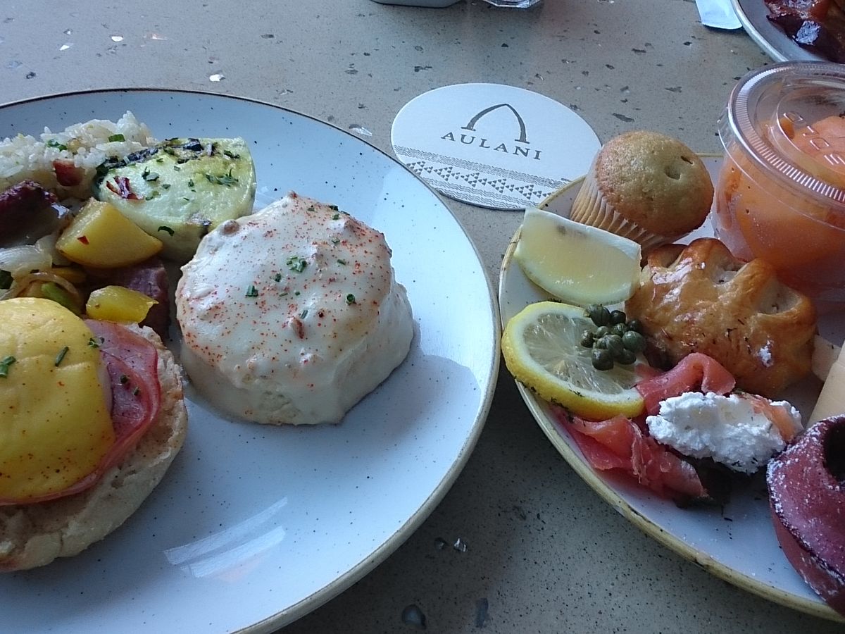 ショップを出た時に、ドライバーさんとすれ違って「マカヒキは予約時間の15分前に受付出来ますよ」と教えてもらったので、すぐにマカヒキで受付。ミッキーとの写真撮影後、テーブルに案内されて美味しく楽しい朝食をいただきました。