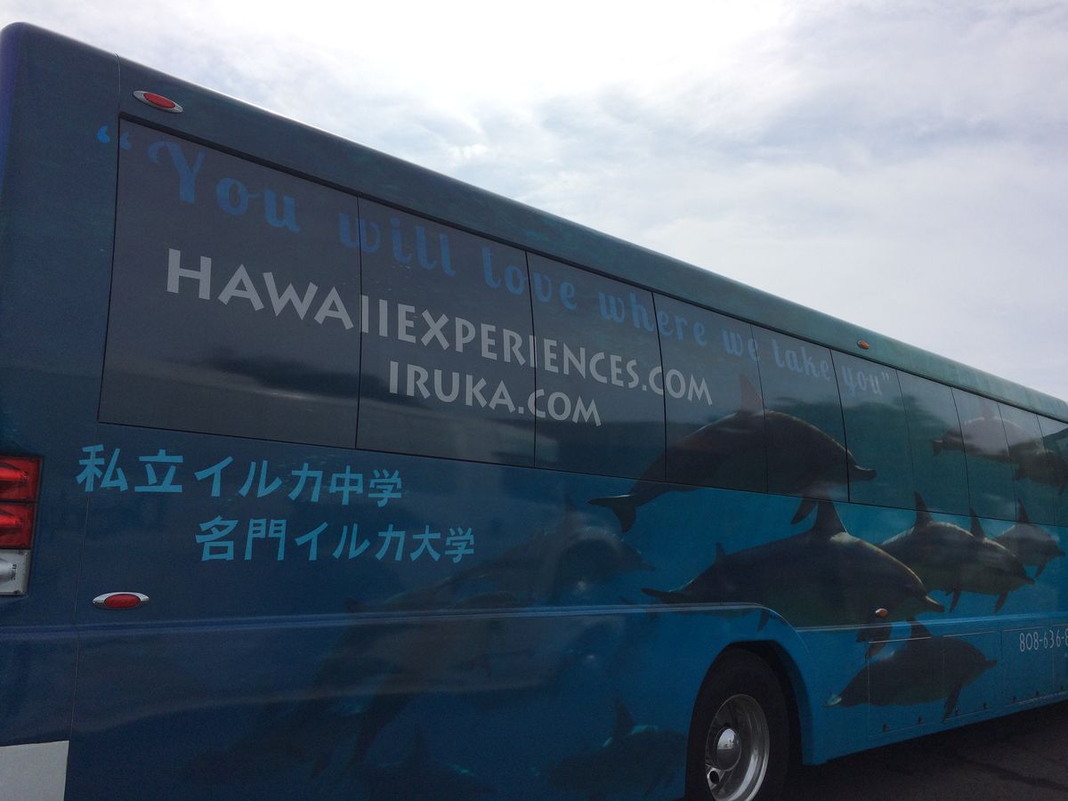 ワイキキのホテルに送迎バスが着き、朝早くから出発!