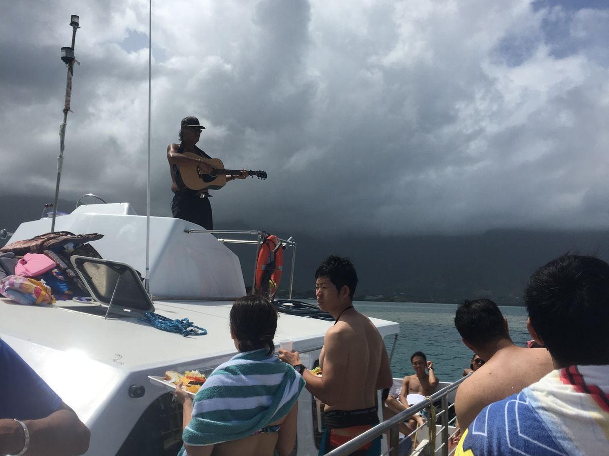 以前助けられたウミガメらしく、船の周りを泳いでいるのを見ると何だかいじらしく思えました。ワイキキだけでないハワイを楽しむことができました。