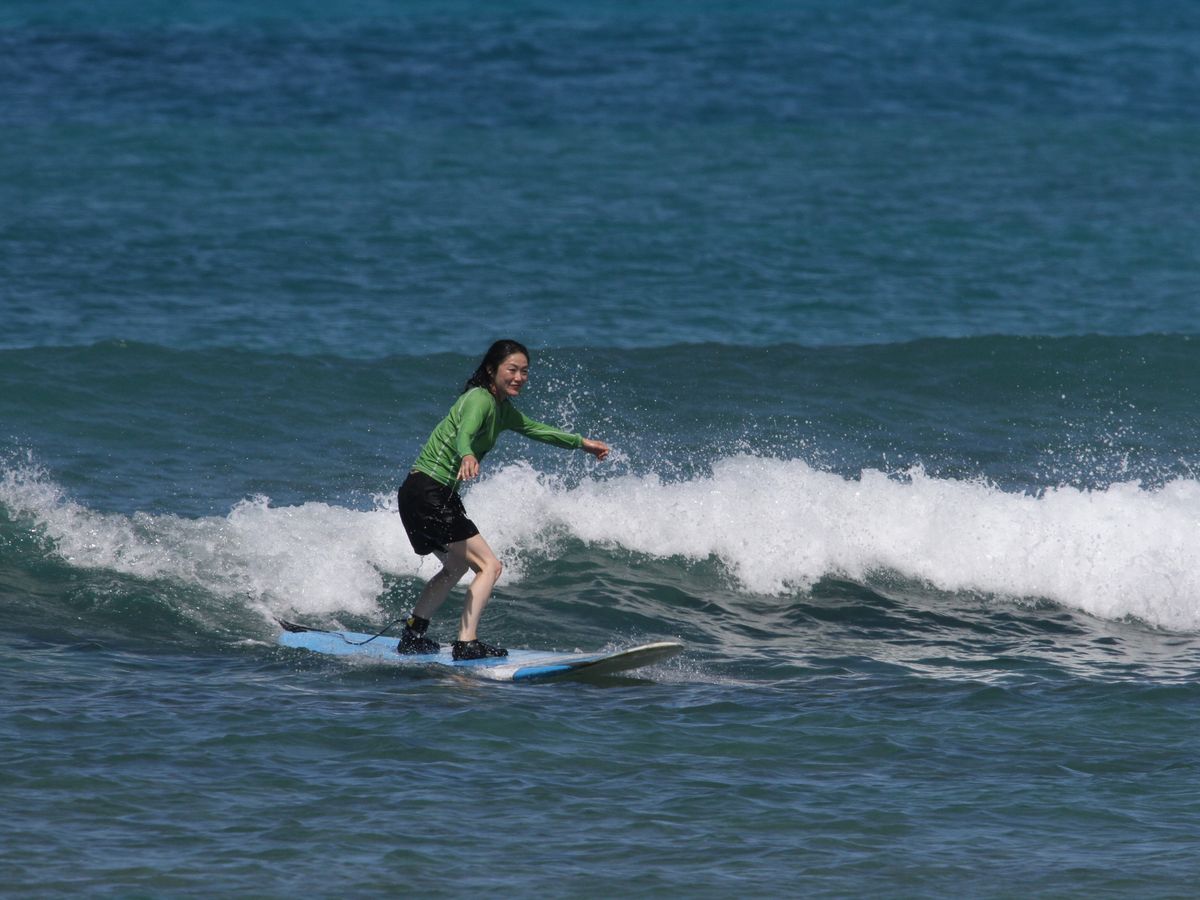 初めてのサーフィンでしたが、波が来た時にインストラクターの方がボードを押してくれ、さらに立ち上がるタイミングも教えてくれて、超楽しかったです。