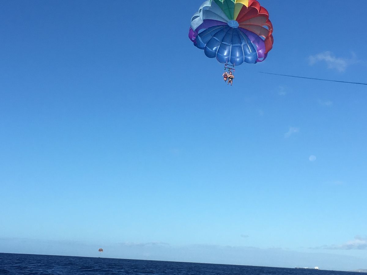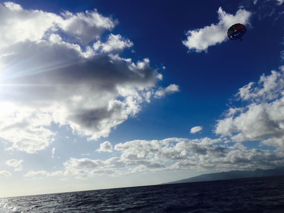 夫婦二人で三回目のハワイ旅行。思い出に残るハワイらしいアクティビティをとパラセイリングを申し込みました。当日は最高のお天気で、90mの高さでしたが、恐怖もなく、まるで鳥になった気分でした。またハワイに来たら、またパラセイリングをまたやりたいです。ただ、送迎バスが30分遅れてきて、とても不安でした。送迎の時間は、守ってほしいですね。