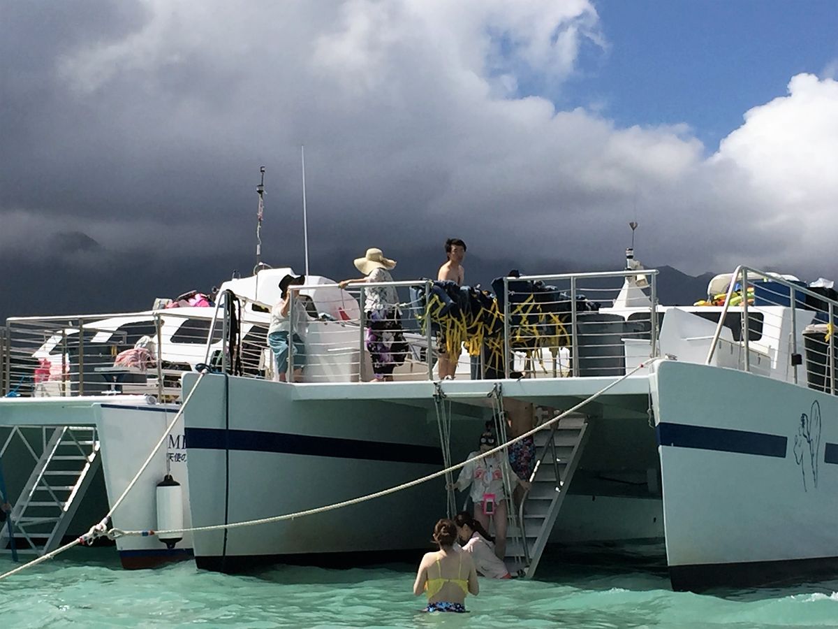 参加日は天候に恵まれ最高と言いたいところですが砂浜が腰のあたりまで・・・ハンバーガーが絶品だったし日本人のクルーが凄く感じ良かったので次回も参加したいと思います
