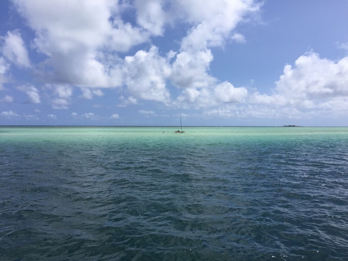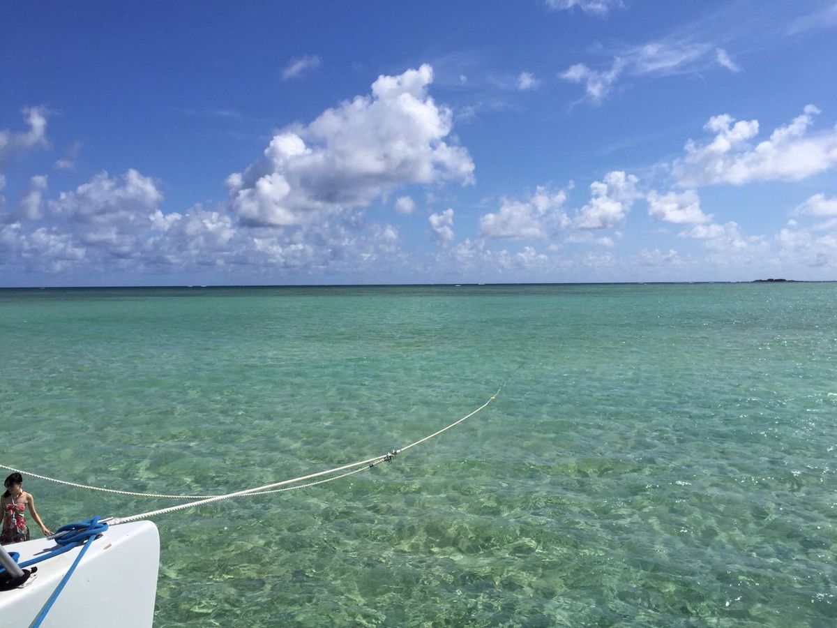 サンドバーは腰位まで海水に浸かりましたが、とても水が綺麗で素敵な場所でした。シュノーケリングをしましたが、魚は1匹もいませんでした。隠れる所がないので、魚はいないですね。