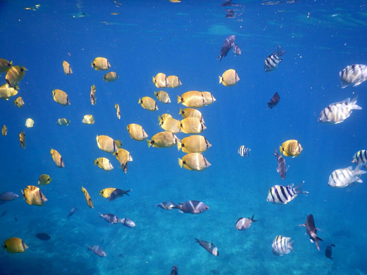 そして思う存分イルカ先生と泳いだあとは、綺麗な魚たちとカメ教授に会うため、また別のポイントへ。