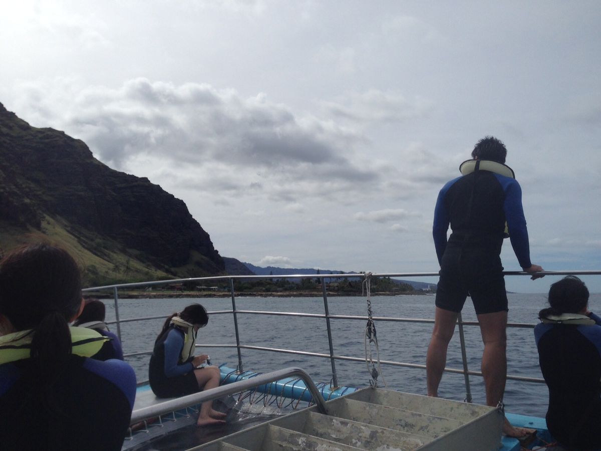 ハネムーンで初めてハワイへ来ました。今回イルカ大学へ入学させていただきました。朝6時にホテルまで迎えに来て頂き港までの約1時間。バス内では丁寧に体験の説明をしてくれるのでとても安心です。ただバス内は少し寒かったです。