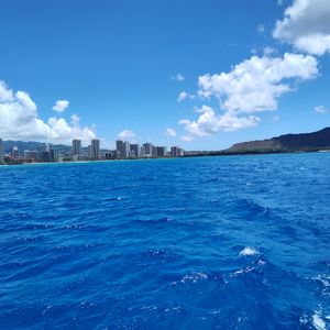 ワイキキカメ大学へご参加いただきありがとうございました。ワイキキ沖から見る青い海と空とダイヤモンドヘッドとワイキキの街並みのコントラスト、美しいですよね!ワイキキ沖のカメのスポットはボートでしか行けない場所です。ご参加いただいた日はイルカとも遭遇できて海の透明度も抜群だったようで、ハワイの楽しい思い出になったようでとても嬉しく思います。次回ハワイにいらっしゃる時はぜひイルカにも会いにきて下さいね。キヨミ様のまたのご参加を心よりお待ちしております。a hui hou and mahalo nui!