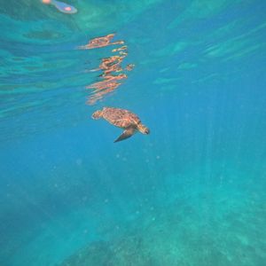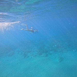 シュノーケルなので直接見られるのは上からか横からのウミガメですが、ガイドさんがGoProを持ってスイスイと潜って行って写真や動画を撮ってくれます。この水中写真データを共有していただけるので、あとから見られてこれもまた面白いです。