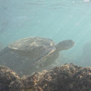I've been to Oahu many times. I brought my fiance this time since he's never been. I wanted him to try out snorkeling and see things other than fish, so the turtle tour was a perfect fit. Honestly the crew did a great job. Even the people we had on the boat with us doing the tour was a wonderful group. The only few downsides were: it rained. And I mean it poured! Not for very long and I'm sure the people in the water didn't notice it much, but I was sitting on the boat at the time and I was trying to cover our backpack and towels, since we would need them to dry off later, and it was coming down like pellets. But it didn't last more than 10-15 min and was more or less over. But the sky stayed dark making it hard to see through the already dark water. The turtles became less visible and it made our whole group decide to get out of the water and come back onto the boat to head back in. We were out there for a good amount of time but not the full time. The other problem we had was it got very crowded in the water looking at the turtles. 4 other boats full of passengers were doing other turtle tours as well. There was just a lot of people bumping into each other. I tried to stay away from most people and still saw a ton of turtles, but my fiance on the other hand had a harder time. It was also scary when I'd look up and not see him through all these other people. The last problem was that there were a few people who didn't know how to swim or snorkel. So it took a long time to explain how to use the snorkel equipment and pass out floaties. The positives were the boat was smooth sailing. Everyone was on time and nice. The turtles were wonderful. Hard to see them when they get super deep but they were big and beautiful and did not disappoint. Lots of fish to see too. The couple who run the boat are wonderful and so are there family who came and helped out as well. For the price I would definitely recommend this and probably do it again when we go back!