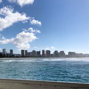 AM10:00港を出港。ワイキキ沖に戻るように船は進み、20分ほどで宿泊していたホテルが見えるくらいのところへ。到着とほぼ同時にタートル発見!陽気な外国人スタッフの「かぁめぇ!」の先には2頭のタートルが海上に姿を現せていました。