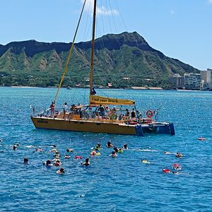 小学生と幼稚園の子供と行きましたが、リピートですが、海にドボンが怖いようで、シュノーケリングは早々に退散。それでもカタマラン号でワイキキ沖の風を切る体験はプライスレスかと。
