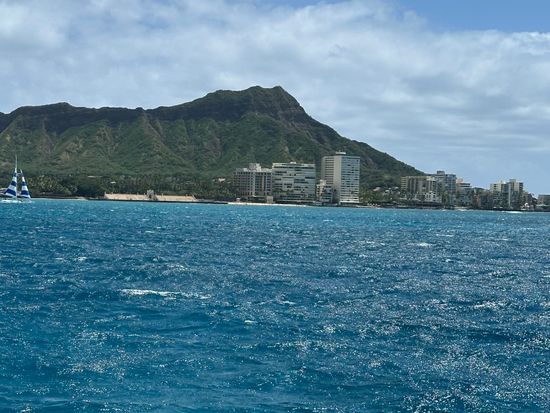 船はダイヤモンドヘッド近くまで移動し、ダイヤモンドヘッドをバックに写真撮影してくれました。