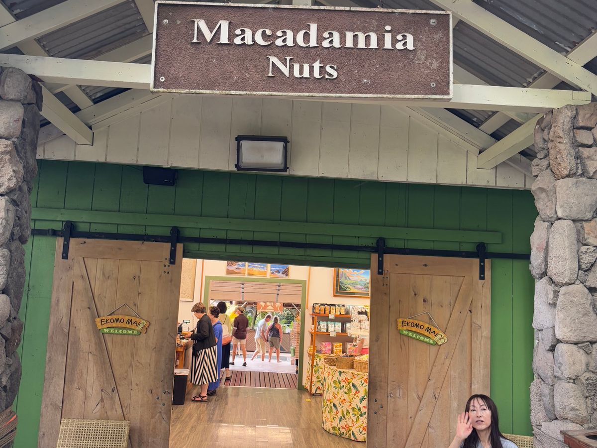 その後、ハレイワに行って自由行動と、その後、マカダミアナッツのお土産屋さんではたくさん試食ができてお土産も買えました。