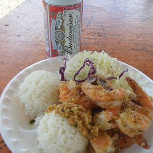 ちょうどよく雨がやんでビーチでガーリックシュリンプのご飯は最高でした!!