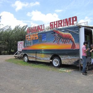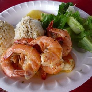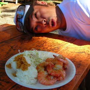この後、ドールプランテーションで1時間ほど満喫して、ハレイワの町のカフクというところで活けすから採りたてのプリプリガーリックシュリンプを食べました。