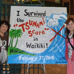 皆さんのカキコミを見て小宮さんに会いたくなり申し込みました。当日を楽しみにしていたところ、チリ大地震発生で津波警報発令、島民は自宅待機でワイキキの浜も お店もClose★ 観光客は3階以上に避難、ホテルから一歩も出れない事態に・・・幸いなことに大きなTSUNAMIは来ないとわかり警報は昼頃解除されました。ツアーが決行されるか心配でアルファトランスさんに連絡を取ったら(携帯をレンタルしてて良かった!)折り返しTELがあり『小宮が参りま~す♪』でウキウキランラン♡
