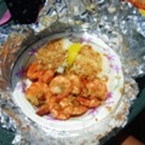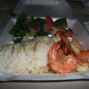 ガーリックシュリンプは弁当スタイルでひとつ$12.00