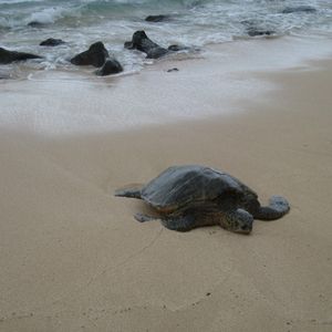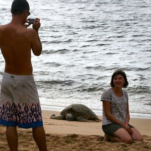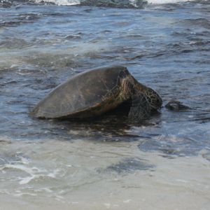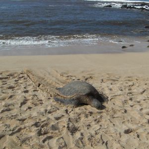 ノースショアのビーチで海ガメに会えました。いるかどうかは運しだいと聞いていたので、ラッキーだったと思います。
