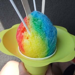 昼食後長い列ができたマツモトシェイブアイスに並び、レインボーカラー(3色選べます)のシェイブアイスをいただきました、ちょ~甘かったです!!