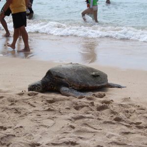 午後からなので、午前中はゆっくりできます。(私たちは朝ダイヤモンドヘッド登山をしました。)今回ウミガメがかなり陸にあがっていて、とてもラッキーでした。