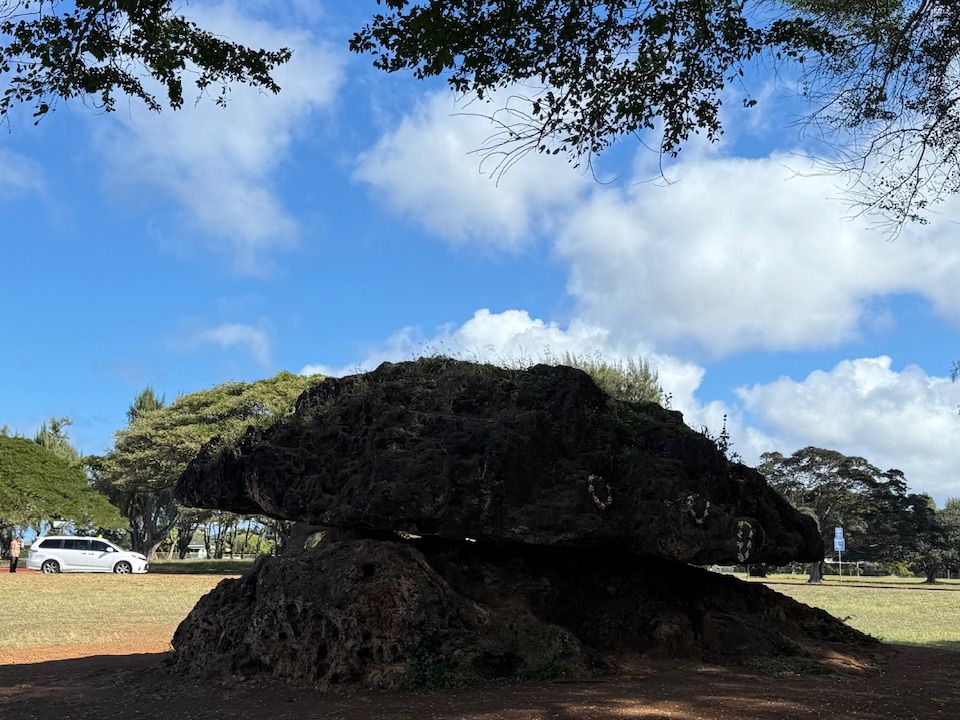 ドールプランテーションへ。混んでいましたが、念願のパイナップル入りソフトクリームを食べることができました。美味しかったです。続いてソープファクトリーへ。ハワイアン・ナチュラル・ソープは種類がたくさんある中、プルメリアとピカケを購入(私も大好きな香り)。そしていよいよ、サンライズシェルビーチにてシェル探索へ。木の棒で砂をかき分けて探しましたが見つからず(泣) しかし、ツアーから1人1ついただけるのでご安心を。珍しい黄色に赤が混じった貝殻です! 次はポハク・ラナイ(バランスロック)へ。直訳すると「岩のベランダ」という意味だそうです。岩と岩の隙間に手を入れてお願いをすると叶うと言われているパワースポット。主に戦勝祈願、金運と仕事運。私もお願いして、パワーを感じてきました。お腹も空いてきた頃、ランチ&ハレイワ散策へ。ガーリックバターシュリンプ、レモンペッパーシュリンプ、ホットドッグを2人で食べました。手が汚れるのでウェットティッシュを持参していて正解でした。ハレイワ散策はランチも含み2時間くらいあるので、ハレイワでしか買えないお土産を探しに行ってきました。次はサンセットビーチへ。とても綺麗なビーチでした。その後、テッズベーカリーに寄ってもらい、BLUEBERRY CREAM PIEを購入。ホテルに帰ってから食べましたが、とても美味しかったのでまた食べたい気持ちになりました。(笑) ラストはトロピカルファームへ。こちらは友人からのお薦めで、ここに行くツアーを探して参加しました。マカダミアナッツの試食がたくさんあり、生のマカデミアナッツも食べれて大満足でした。帰りは渋滞もあり、1時間遅れてホテルに帰着。ツアーガイドのKeikoさんの話が面白くて、1日とても楽しめました。ありがとうございました。運転もお疲れ様でした。ツアー参加の皆さまも良い方々ばかりで良かったです。感謝❤ また参加したいです。