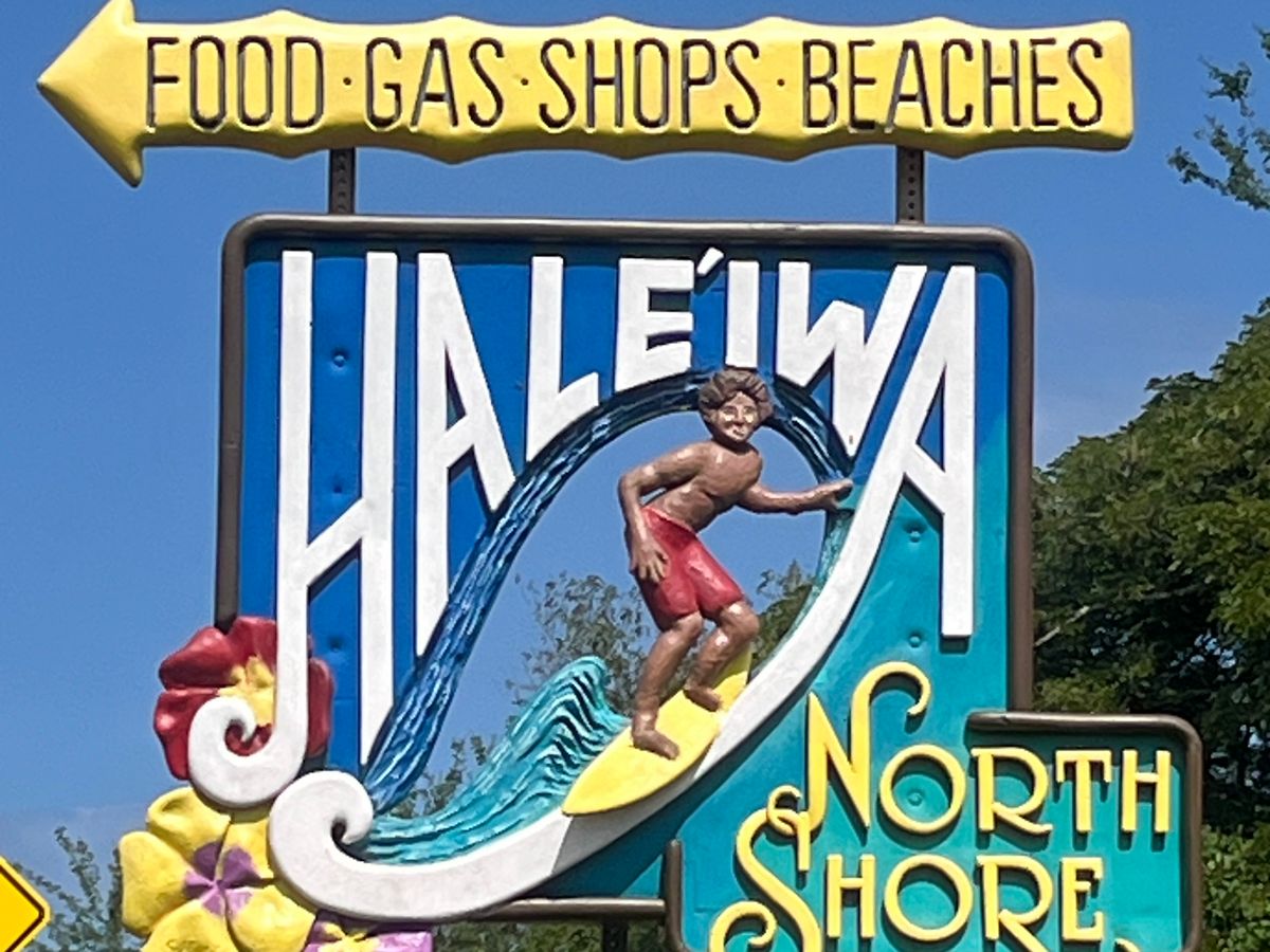 ドールを出ると、遅刻したお詫びということでハレイワの有名な看板の写真を撮るために数分停車しました。