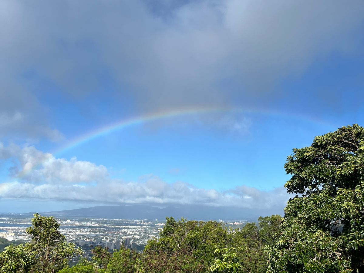 タンタラスの丘に到着した時は雨が降っており、一日雨のツアーになるかなと思っていたのですが、少し経つと雨があがり虹を見ることができました。