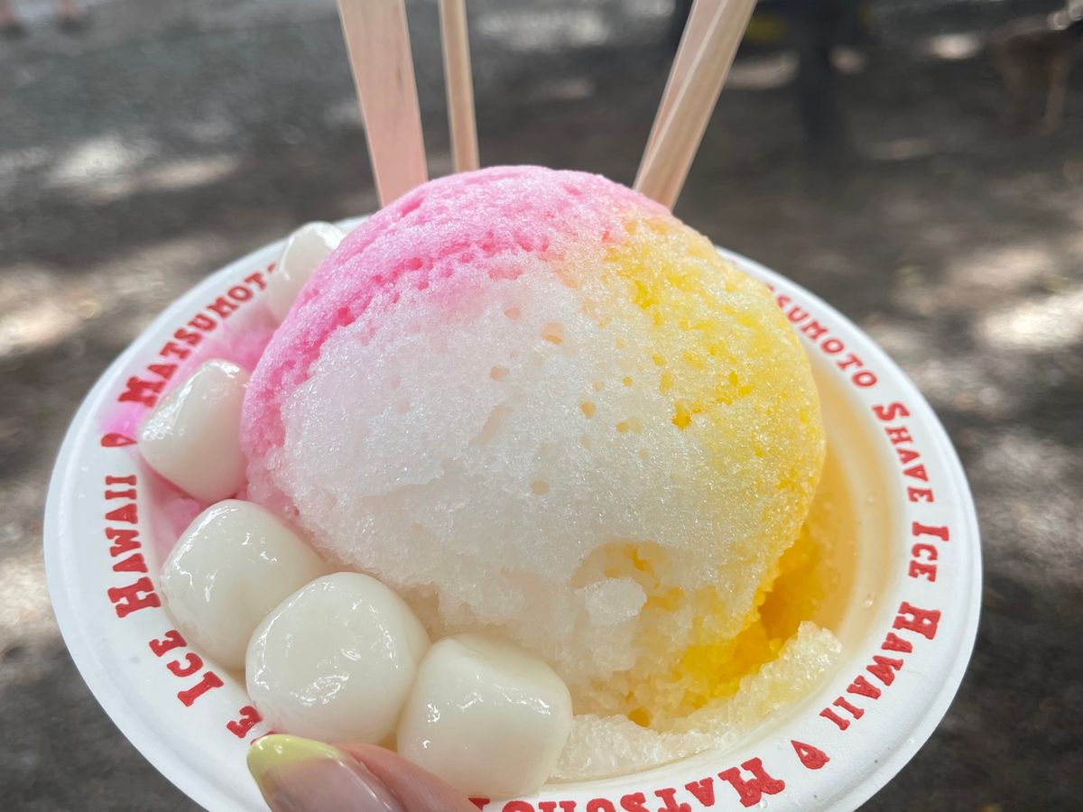ハレイワ散策では自由時間が2時間あったので、たくさんのお店を見ることができました。以前行った時は土曜日で混んでおり食べれなかった松本シェイブアイスも食べることができました。