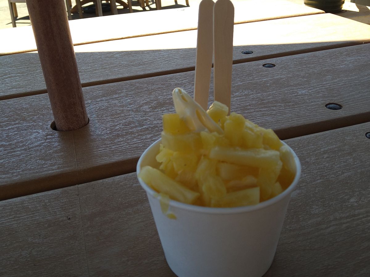 その後、別のフルーツスタンドとサンセットビーチに立ち寄りました。もう一つのビーチに立ち寄る予定でしたが、途中での立ち寄りが多すぎて、ほとんどが観光客向けのショップだったので、スキップすることにしました。最後の立ち寄りはドールプランテーションでしたが、非常にがっかりしました。パイナップルを一つも見ることができませんでした!場所は観光客向けの高級店で混雑していて、アイスクリームはまあまあでした。パイナップル畑を見るための列車には乗れませんでした。チケットが売り切れていたからです。迷路はまあまあでしたが、パイナップルはありませんでした。個人的にはドールプランテーションに行くことをお勧めしません。