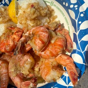 東周りのツアーでカフクファームのハワイ産アサイボール、ロミーズは大きなエビのガーリックシュリンプ。