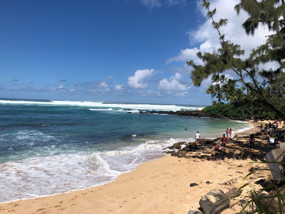 ノースショアの海はとても綺麗でした。亀さんは見れなかったのですが、海岸の穴の中からカニさんが出てきたり貝殻探しをしたり、ドールの工場ではパイナップルのアイスクリームをいただきましたが、とてもビックサイズで二人で食べても多くて残してしまいました。