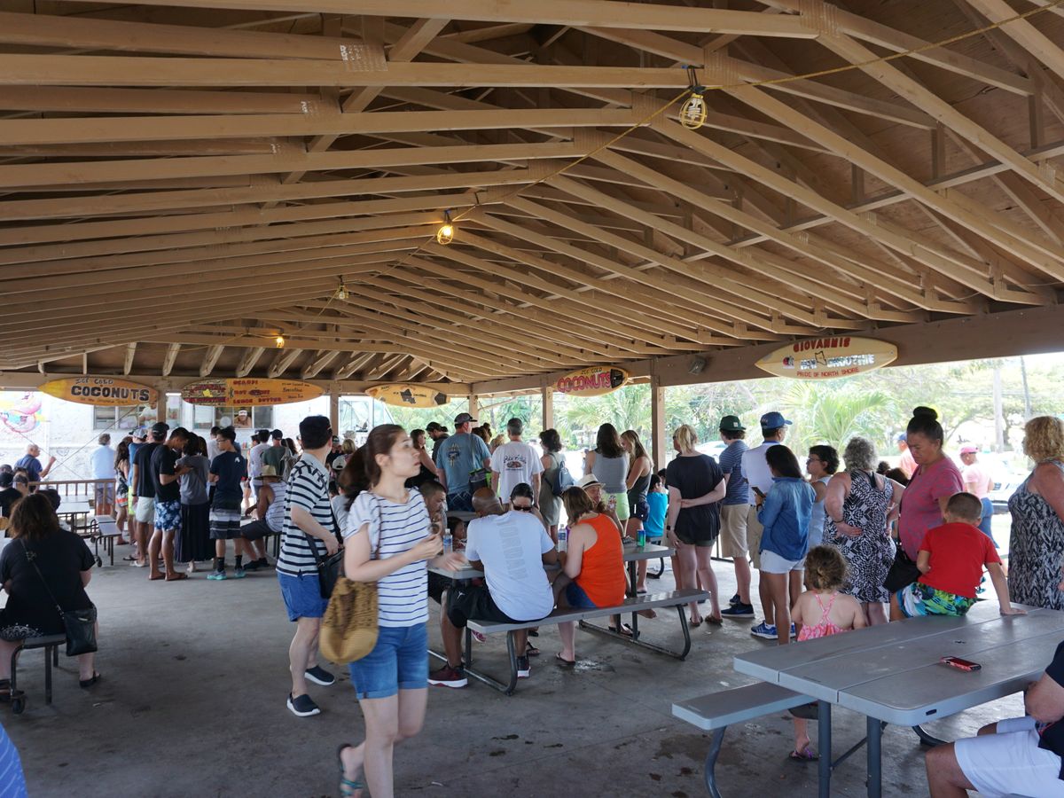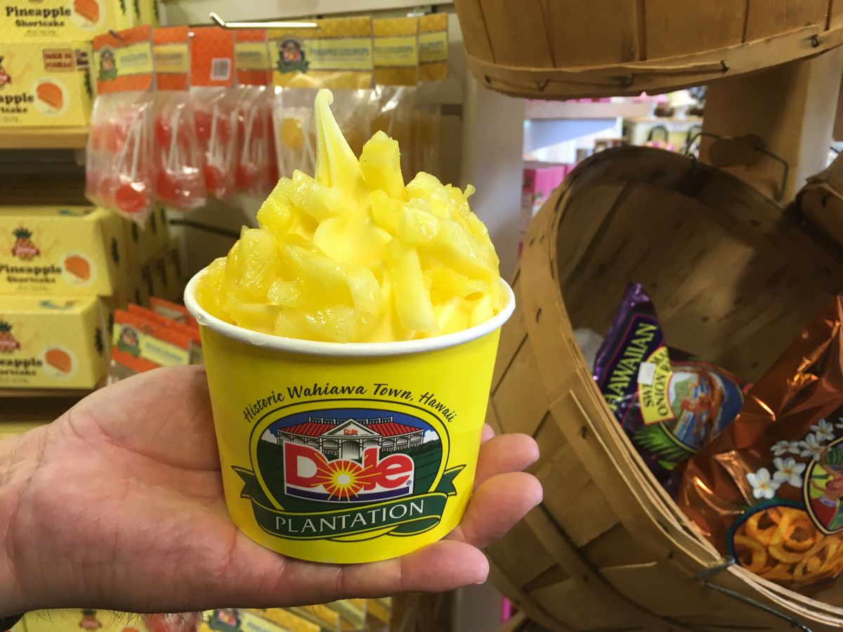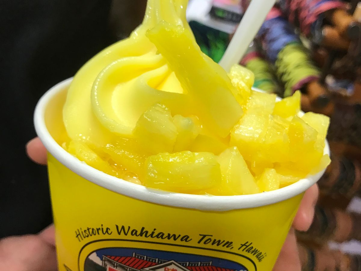 また、ノースショアショッピングセンターでの自由時間で、有名なハンバーガー屋さんやマツモトシェイブアイス にも行けるので、手前のパイナップル屋さんでは軽く食べるくらいがオススメです!