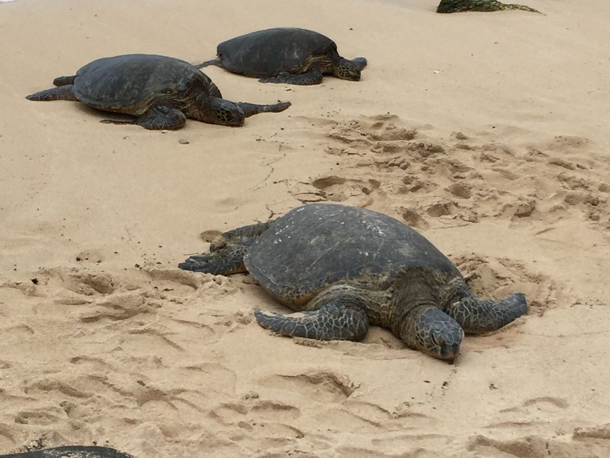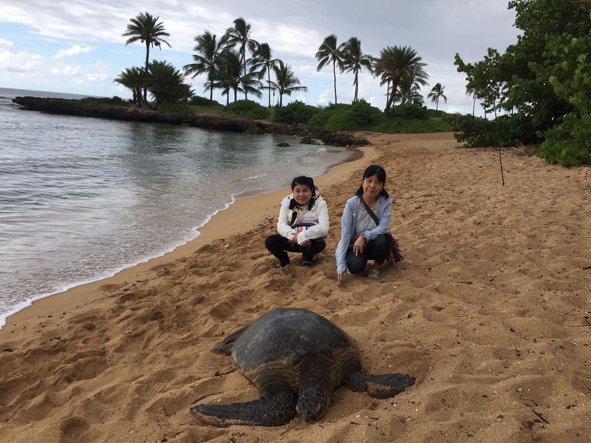 カメに会えました。あいにくのお天気でしたがガイドさんがいろいろと考えてくださり、楽しく過ごすことが出来ました。ガーリックシュリンプも美味しかったし、タンタラスの夜景も美味しかったです。お買い物も出来ました。ガイドさんに感謝です❗