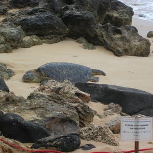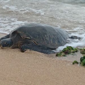 ここではHONU(ウミガメ)が砂浜に上がって甲羅干ししているのに遭遇。