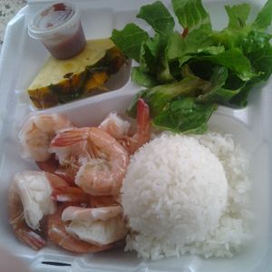 ノースショアに行ったら絶対行きたいと思っていただけにとても残念でした。代わりにガイドさんがオススメしてくれた日本人経営のCAMARONという店で食べましたが、正直別日にホテル周辺で食べたガーリックシュリンプの方が美味しかった。プラス1ドルでエビの殻付きのサービスがあったのは食べやすくて良かったです。日本人らしいサービスですね。それからフリフリチキンを食べました。こちらは美味しかったです。