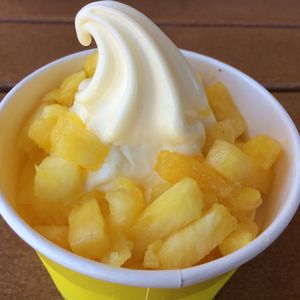 「ドールプランテーション」は30分以下の滞在時間だったので残念ですが、パイナップルのソフトクリームは絶品です。カップのは上に果肉が乗っています。