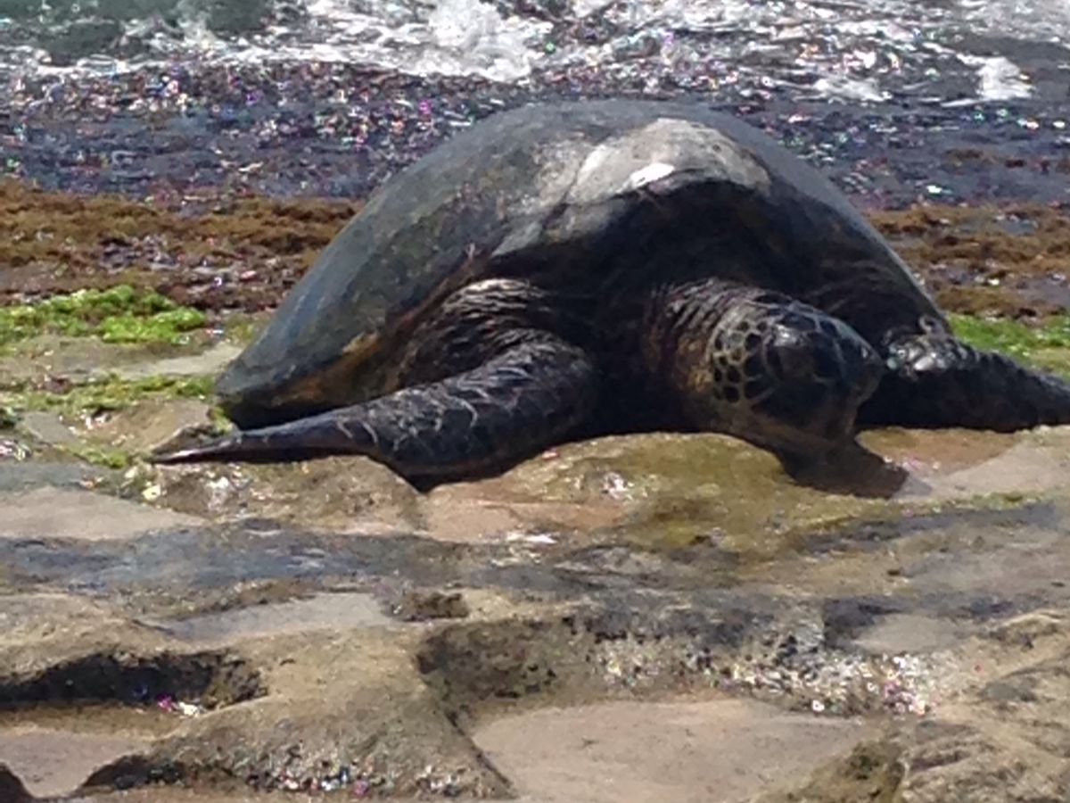 ハワイではウミガメなどの絶滅危惧動物の保護に力を入れていて、2メートル以上近づくと罰金らしい。