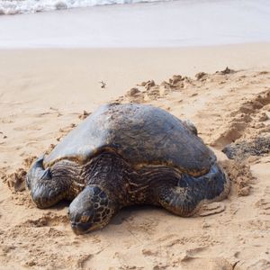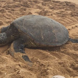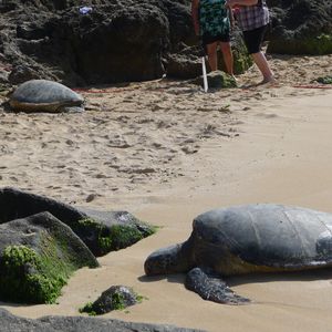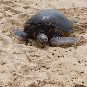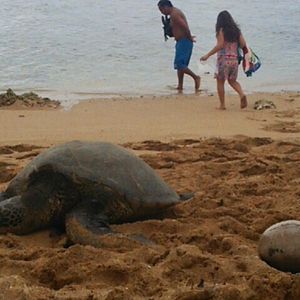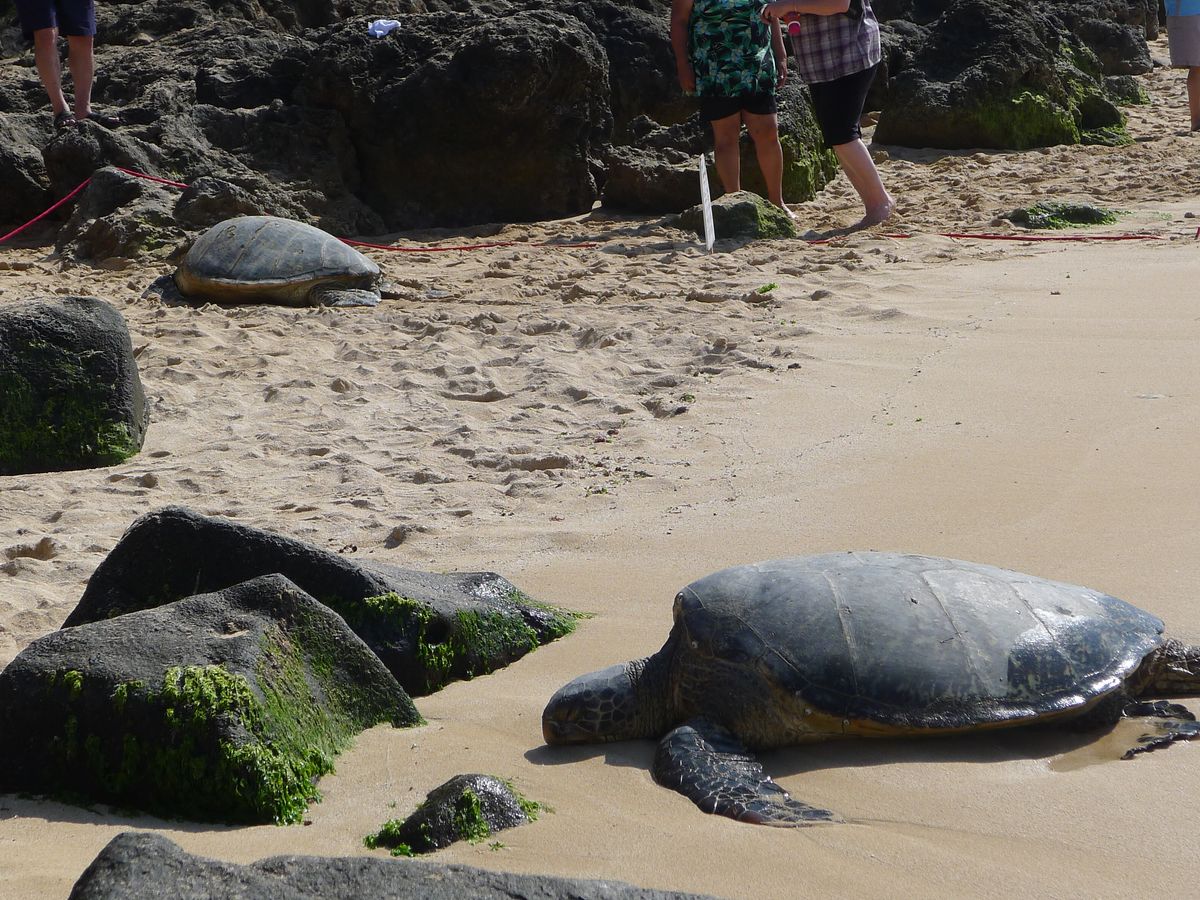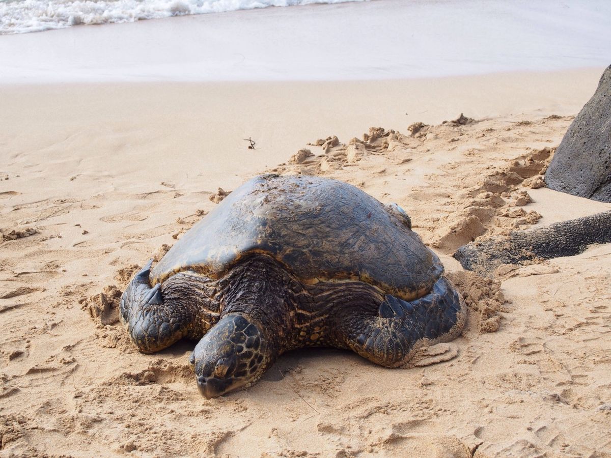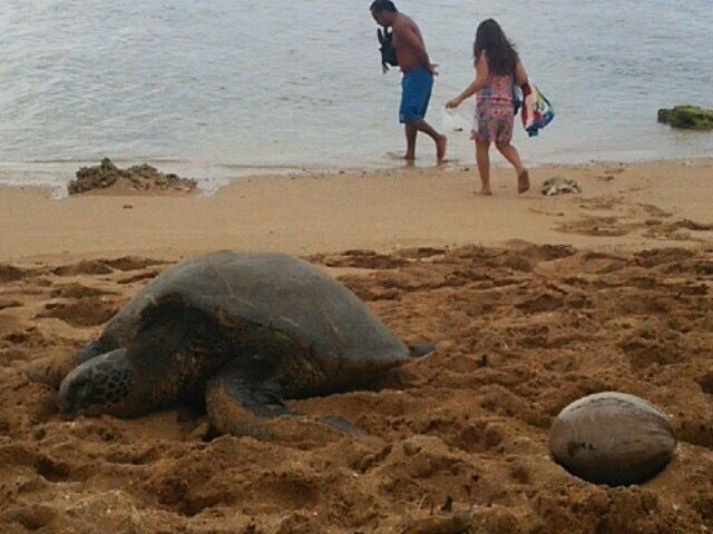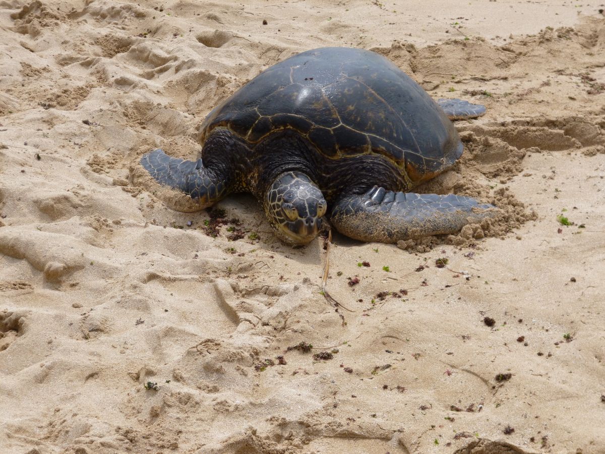 その後は、アイリービーチに行き、甲羅干ししているホヌに遭遇!