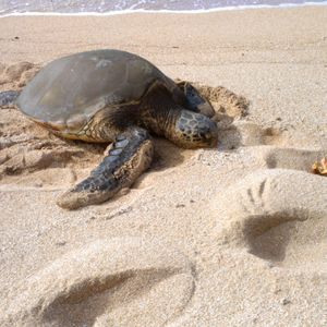 ノースショアでウミガメとツーショットの後