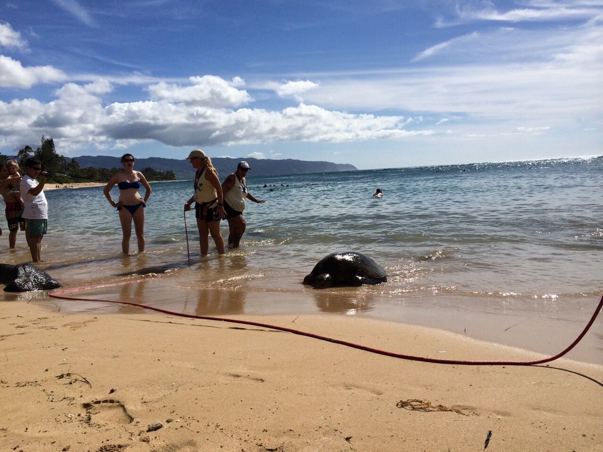 独立記念日の翌日に、夫婦と小学生兄妹の4人で参加しました。ガイドのコミヤさんがホテルまでバンで迎えにきてくださり、私たちの後にも3か所のホテルでピックアップして合計4家族13名での楽しいツアーでした。ガイドのコミヤさんは楽しいお話を交えながらも真面目にオアフ各所の案内をしてくださいました。ツアー参加者に乳児やご高齢の方がいらっしゃり、各所での滞在時間を少し長めに設定してくださったようです。ウミガメビーチでは、上陸しているカメさんはいなかったものの、近くまで来ているカメさんがひょっこり顔を出すタイミングに写真がとれてラッキーでした。