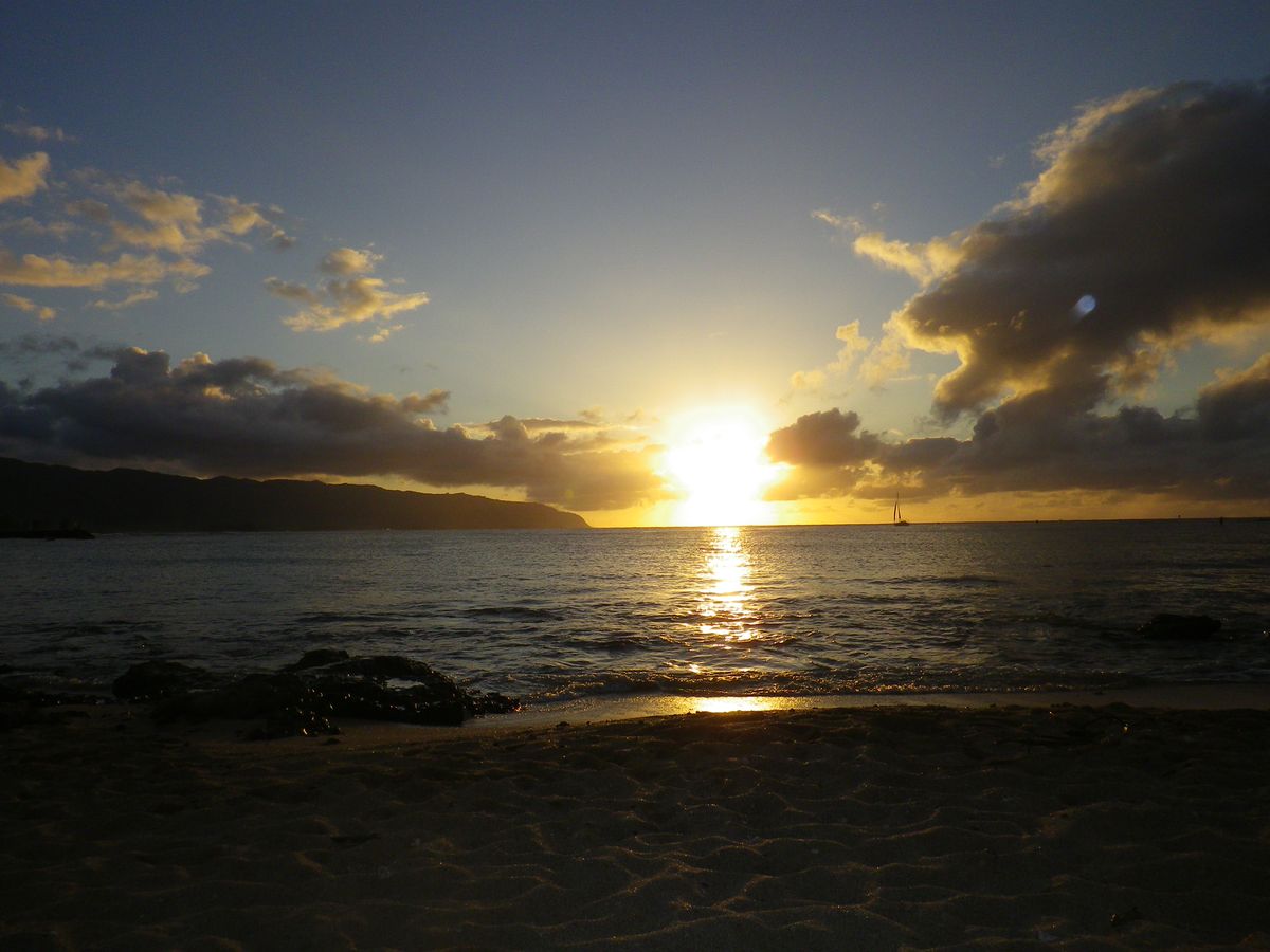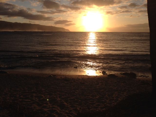 ノースショアでなんと幸運にも海亀さんが砂浜にあがってくるところを目の前でみることができました。ハレイワでサンセットを見ながら食べたガーリック味のシュリンプ弁当も最高。