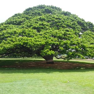■先ず、誰も居ない雄大なモアナルアガーデンでは、花の咲いたモンキーポッド(この樹何の樹=日立の樹)を独り占め