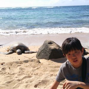 初めてのハワイ。何処へ行ったらよいのか、出発前からあれこれガイド本を読み事前にお勉強しましたが、このツアーに参加したら行きたかったところが全て網羅されていて大正解!ガイドのサカイさんのお話が面白い上に、とても手配上手で、待ち時間なしで有名店のエビ料理が買えたり、ホテルのプライベートビーチを満喫できたりで家族一同大満足の一日を過ごすことができました。我が儘なリクエストにも臨機応変に対応して頂き、けして予定に固執せず、その日一番おすすめの場所を案内して頂き感激です。カメビーチでカメに出会えて小学生の息子は大喜び!サカイさんありがとうございました。また、是非ご一緒させて下さいね。マハ~ロ