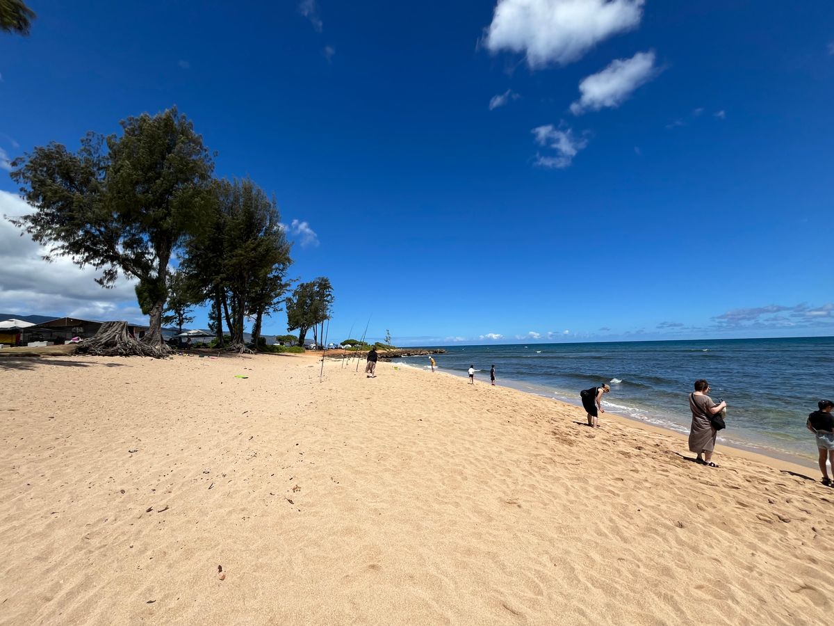 ハレイワのビーチでウミガメがいるか探しに行くならそこそこ歩きます。歩きやすい靴にしておくと良いと思います。