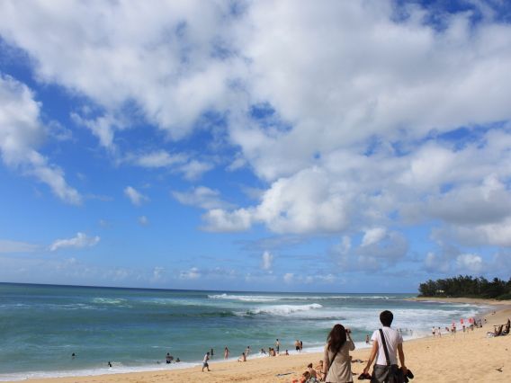ハレイワの町ものんびり散策しました。名物のガーリック味の海老料理のお弁当を堪能しながら、海がめ一杯いる浜辺でノースに沈む夕日に大満足の一日でした。ドライバーの方の手際の良さにも感謝です。ありがとうございました!