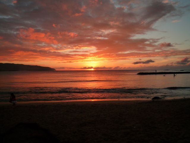 海亀には残念ながら合うことは出来ませんでしたが、お天気にも恵まれてノースショアの夕日は最高で感動しました。