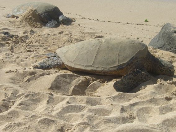 私たちは、運よくウミガメの甲羅干しをみることができてラッキーでした。