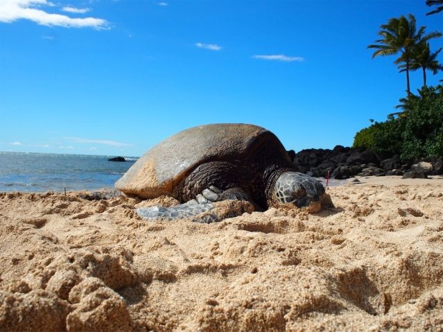途中ウミガメに出会いながらノースショアまでのドライブ、