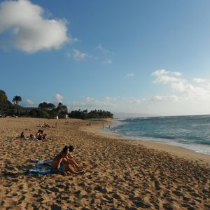 ノースショアに初めて行きました。サンセットが最後の最後で雲が出てきて見れませんでした。残念でした。
