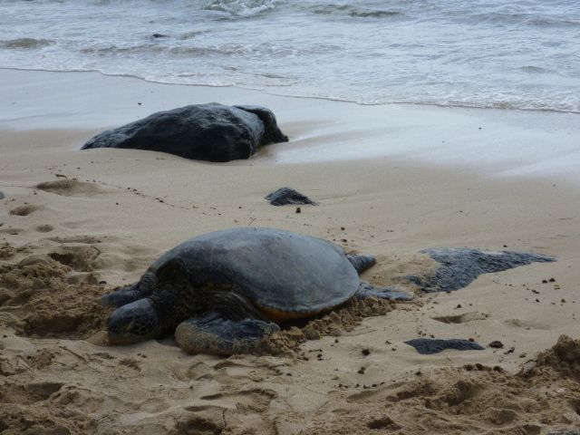 日程表にはないマラサダのお店に寄って下さったり、カメが浜辺にいない、ならば――と、別の浜まで連れて行って下さったり(そこでなんと2匹も見れました!)。