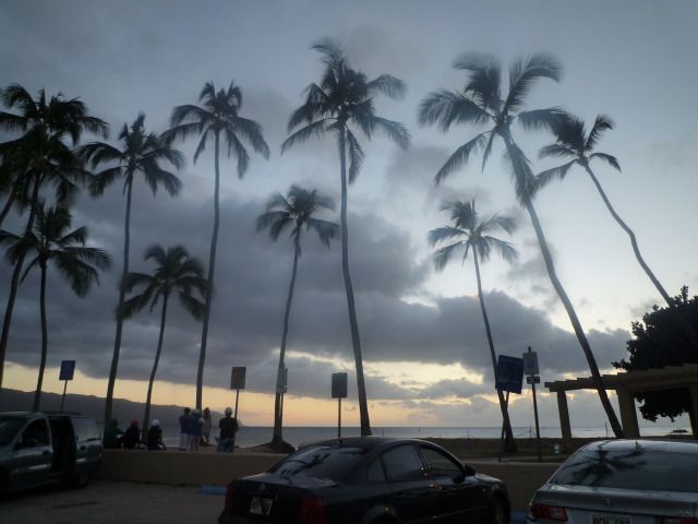1:25約束集の合場所に優しそうなガイドの方のお迎えです。各ホテルを回り10名での出発です。まずは噂のマラサダのお店に案内してもらって出来立てをほうばり(満足) 続いてドールのパイナップル畑へ まずは楽しみにしていたソフトクリームを注文 美味しい!!その前に この木なんの木で有名な合歓木を見学。何回見てもゆったりした素適な木。でも日本人観光客ばかりかな..? 続いて海亀ビーチ。いるのかなぁ…3匹も甲羅干し中。可愛い!大きい!でもロープがひかれ管理の方がついて守られているんだなぁ…と感心!! しばらくガイドの小宮さんの楽しい説明を聞きながら走って、ノースシェアのシュリンプのお店へ寄ってもらって注文。ハレイワの町を散策している間にシュリンプをとりに行って下さりサンセットビーチで日の入りを見ながら お弁当。素敵!癒される!! そして念願のタンタラスの丘の夜景。初めてでは無かったけれど、こだわりの小宮さんのスポット。南十字星の話。とても満足しました。ガイドの小宮さんがとても楽しくててきぱきと色々とピックアップしてくださって、お昼からなツアーだし余り期待して居なかったのですが、凄くお得感のあるツアーでした。ただ残念だったのはせっかく小宮さんにいただいたCDが規格外とかで再生出来なかったこと。